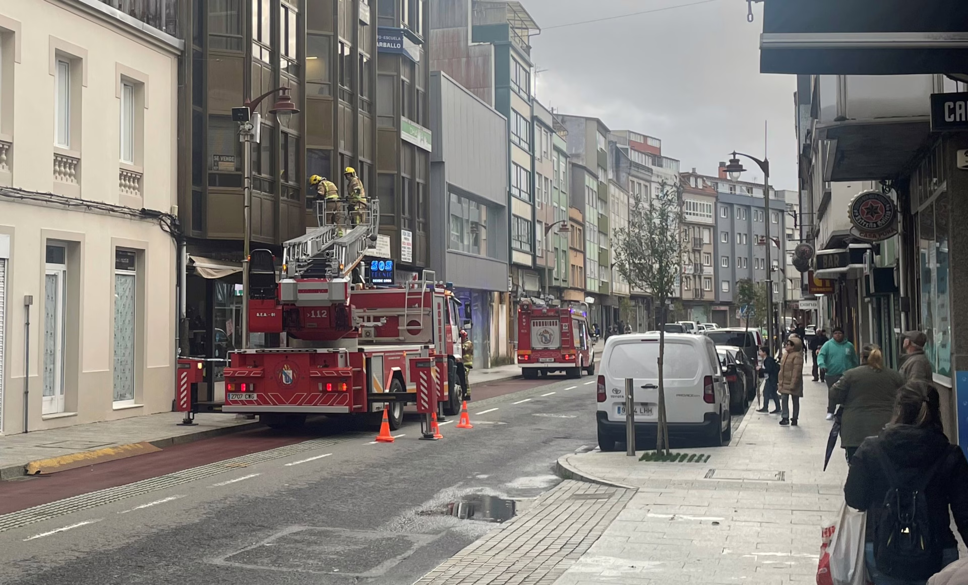 Acto seguido o desprendemento de partes dun rótulo á altura do número 23-25 da rúa Fomento fixo necesaria a intervención dos bombeiros para desmontalo, evitando así a caída total do mesmo de xeito descontrolado, con perigo para os viandantes e o propio táfico rodado.