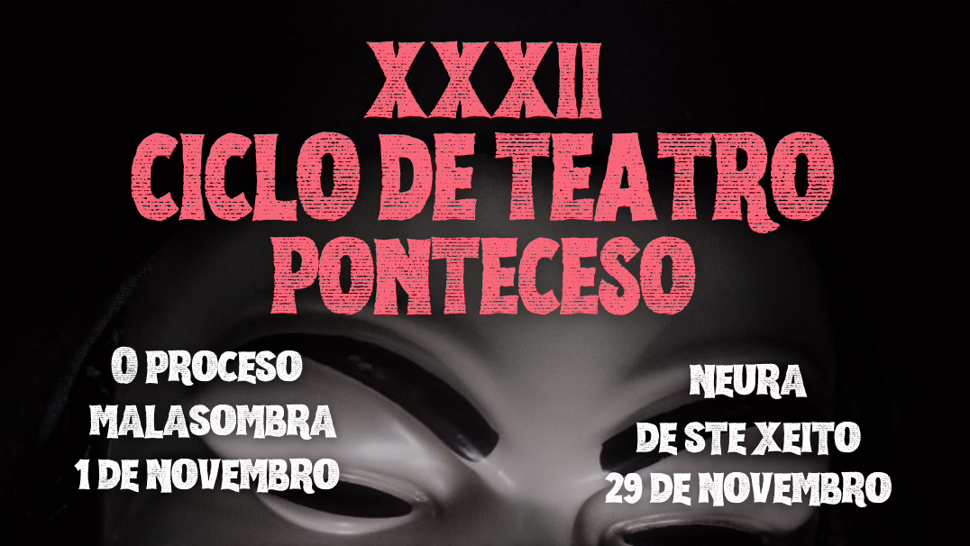 O  Concello de Ponteceso presenta unha nova edición do seu xa consolidado Ciclo de Teatro, que este ano alcanza a súa XXXII edición, un dos máis lonxevos da provincia da Coruña e un referente cultural na Costa da Morte. Durante os sábados do mes de novembro, o Edificio das Escolas, sempre ás 22:00 horas, converterase nun espazo de encontro co mellor teatro galego contemporáneo, ofrecendo cinco propostas diversas que combinan comedia, reflexión e crítica social.