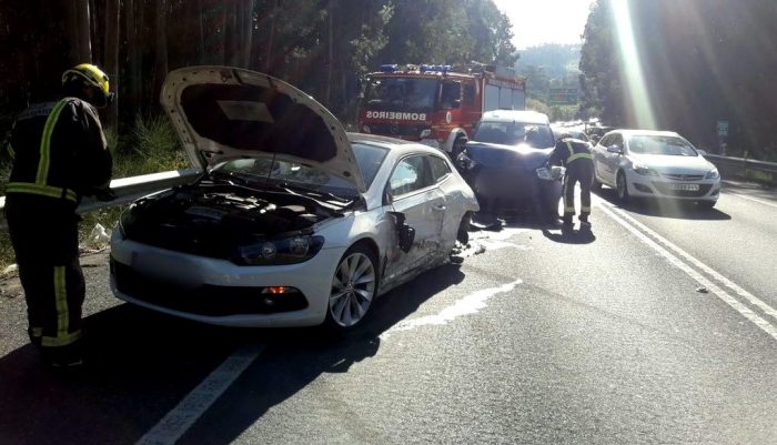 Tratouse dunha colisión lateral na via da alta capacidade do Salnés, entre Sanxenxo e Meaño. Víronse implicados catro vehículos e tiveron que ser atendidas oito persoas feridas. O accidente provocou retencións na VG-4.1 ao tratarse dun tramo que é utilizado por numerosos vehículos durante as xornadas de domingo de volta de zonas turísticas como Sanxenxo ou do Grove. Esta vía conta unicamente con dous carrís e, en xornadas de moita afluencia ás praias, sempre xera atascos e, con frecuencia, prodúcense accidentes neste tramo, que se mantén á espera de que a Xunta proxecte o seu desdobramento. Ata o lugar desprazáronse efectivos do servizo de Emerxencias de Sanxenxo, ademais da Garda Civil e de ambulancias do 061.