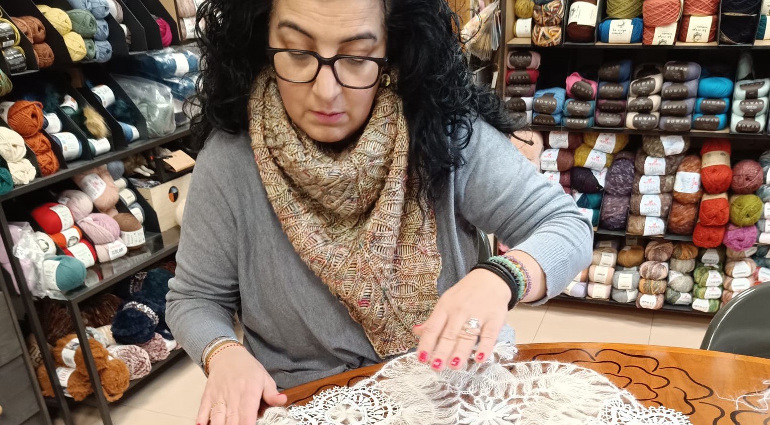 Lola Logaro, que se define como “creativa téxtil y artesana” e traballa con “calceta y gancho desde una visión personal y creativa” explica que “nunca me había planteado integrar el encaixe en las prendas de punto y ganchillo pero la verdad es que, al combinarlo con el hilo fino con el que estoy trabajando, el resultado es muy bonito”. “Ha sido un gran descubrimiento”, afirma.