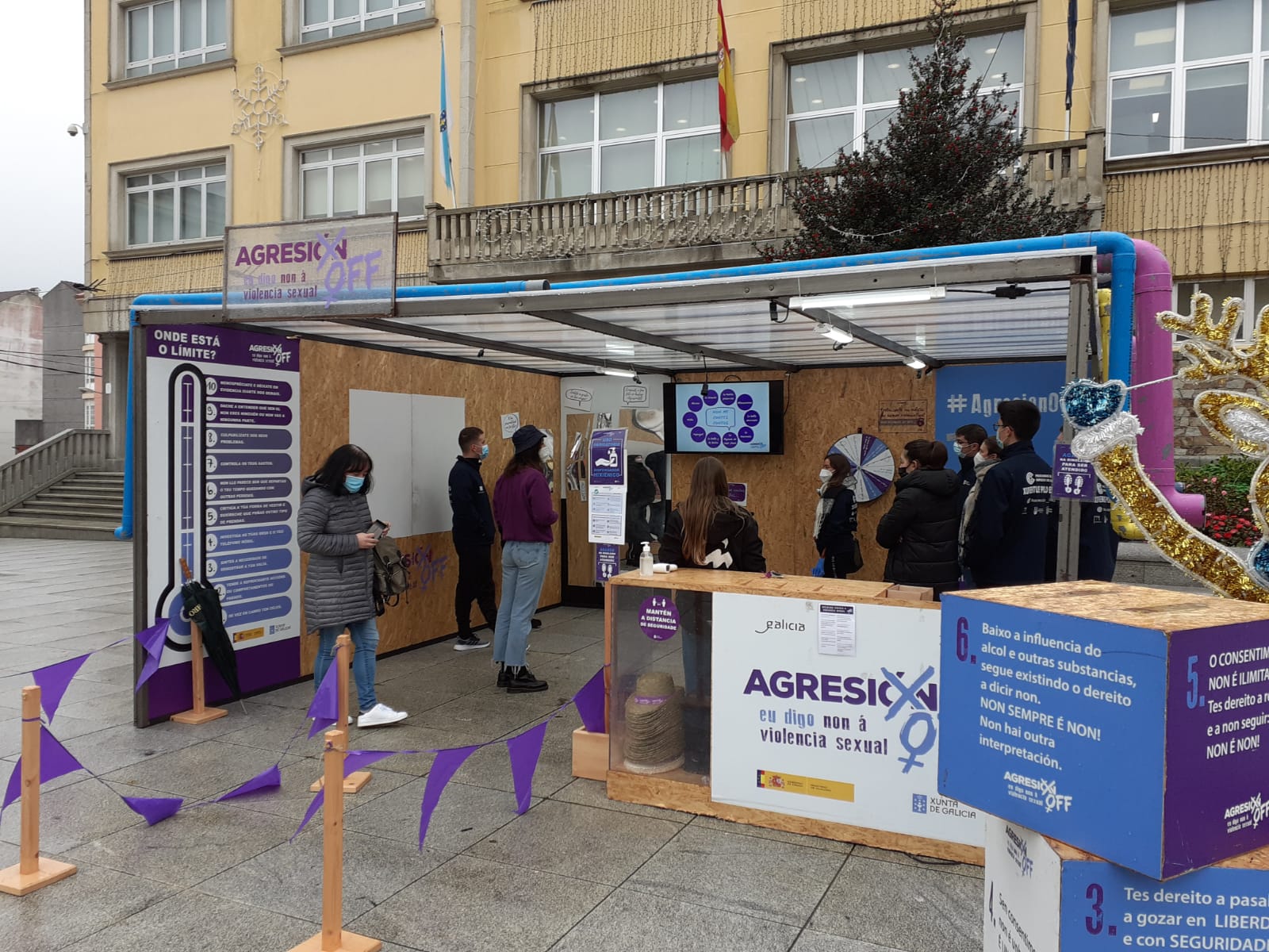 La plaza del Ayuntamiento en Vimianzo acogió este jueves el programa AgresiónOff 2020, donde mayores y pequeños realizaron diferentes actividades desde las 11:30 horas.