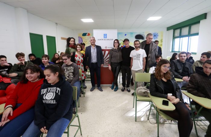 El proyecto Ameto Mítico pretende actualizar la temática xacobea y acercarla, a través de los propios autores, a diferentes centros educativos. Es la primera vez que se hace una residencia literaria itinerante de estas características y hoy se celebró en el centro compostelano su último encuentro con los estudiantes después de que los poetas pasaran por el centros CPI Poeta Uxío Novoneyra de Folgoso do Courel, CPI Uxío Novoneira de Pedrafita do Cebreiro e IES Lucus Augusti de Lugo.