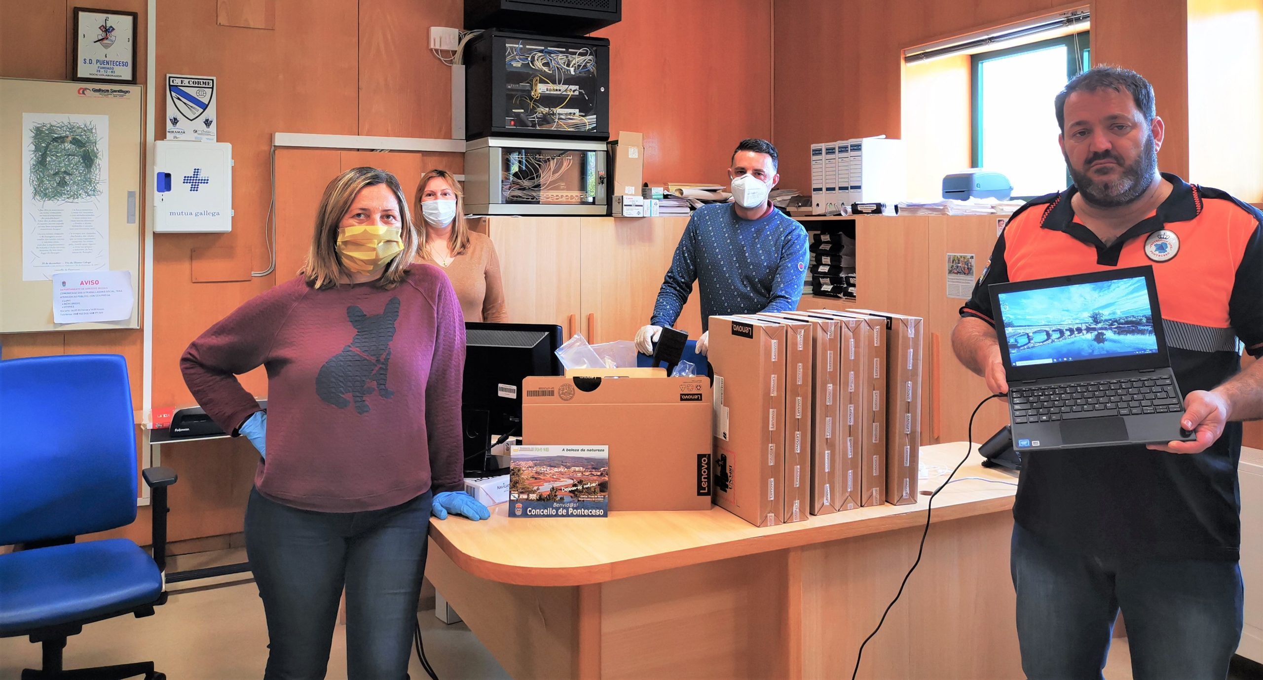 O Concello de Ponteceso acaba de poñer 10 ordenadores portátiles a disposición dos estudantes de familias con menos ou poucos recursos para que os nenos poidan acceder a contidos educativos online. O material foi doado pola empresa EDP Renováveis.
