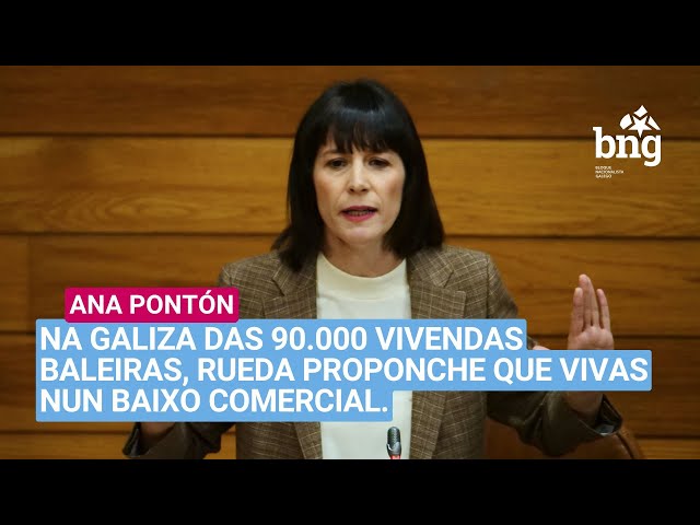 A portavoz nacional do BNG, Ana Pontón, criticou a “ocorrencia” do Goberno de Alfonso Rueda de pretender destinar a vivenda “baixos comerciais que levan anos abandonados porque ninguén os quere”, cando en Galicia hai 90.000 pisos baleiros, só nas grandes cidades, que xa teñen as infraestruturas, servizos e condicións de habitabilidade precisas e que, polo tanto, poden ser comprados, rehabilitados e postos a disposición da cidadanía “a prezos que poida pagar”.