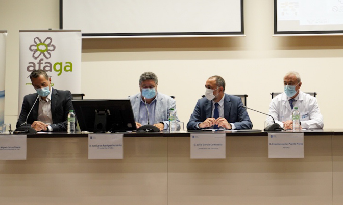 O conselleiro de Sanidade, Julio García Comesaña, asistiu en Vigo á presentación do proxecto de investigación “Desenvolvemento de biomarcadores familiares de deterioro cognitivo e estrés familiar na enfermidade de Alzheimer”, que artellarán a Asociación de Familiares de Enfermos de Alzheimer e outras Demencias de Galicia (AFAGA), e o Instituto de Investigación Sanitaria Galicia Sur.