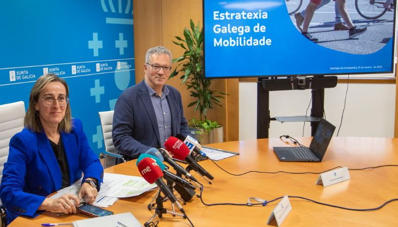 La conselleira de Infraestructuras y Movilidad, Ethel Vázquez, con el director de la Agencia Gallega de Infraestructuras, Francisco Menéndez, y con el director general de Movilidad, Ignacio Maestro, presentó este documento que se somete a información pública.