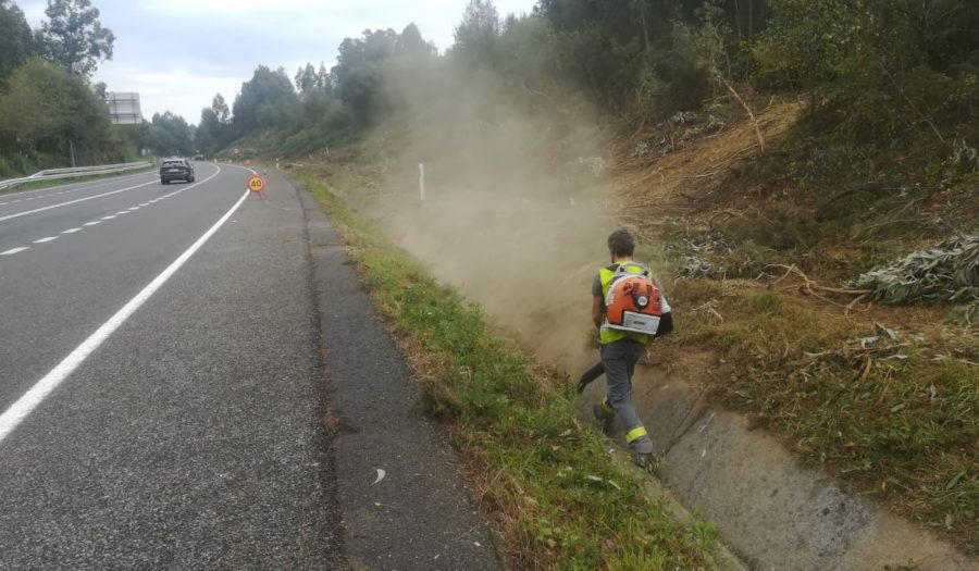 Estas actuaciones de limpieza contribuyen a la prevención de los fuegos al eliminar especies pirófilas como el pino, el eucalipto o la acacia en las márgenes de las vías. Hace falta recordar que la Ley 3/2007, de 9 de abril, de prevención y defensa contra los incendios forestales de Galicia recoge el objetivo de la rotura de la continuidad horizontal y vertical de la biomasa, de modo que las carreteras actúen con efecto “cortafuegos”.