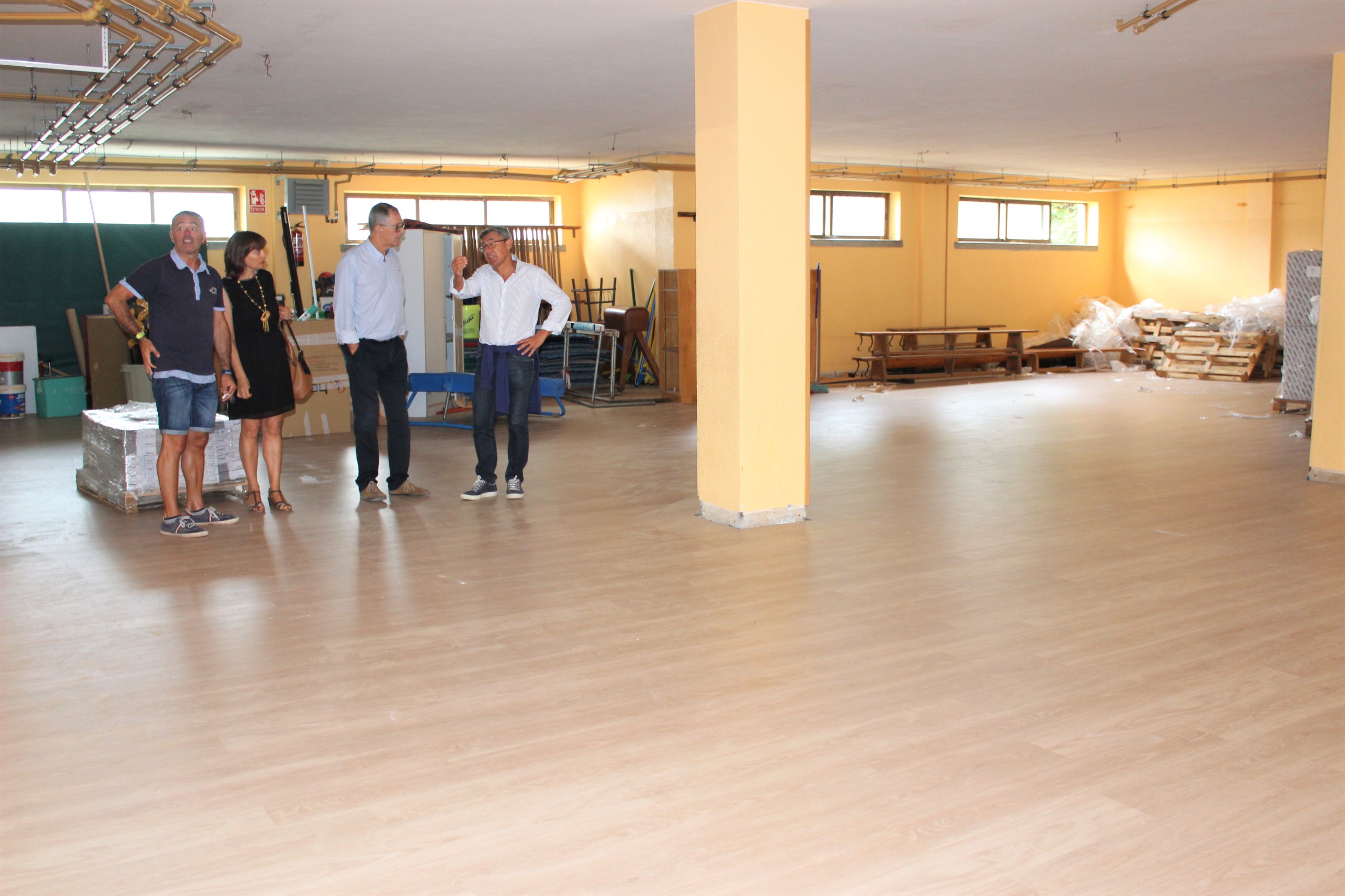 Entre las obras en marcha figura la instalación del nuevo pavimento en uno de los gimnasios del CEIP Fogar, donde el Ayuntamiento de Carballo está colaborando también en el acondicionamiento de los nuevos despachos del área de dirección, y en los próximos días se instalarán nuevas canastas y porterías en las pistas exteriores.