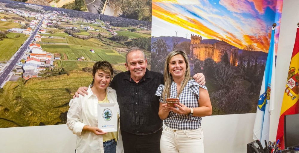 La alcaldesa de Vimianzo, Mónica Rodríguez, y la concejala de Bienestar Social, María José Pose, recibieron en el Ayuntamiento a Carlos Ameijeiras, presidente de la Asociación Benéfica Cultural del Partido de Corcubión, ABC Corcubión, quien le hizo entrega de los detalles del centenario celebrado el pasado mes de noviembre.