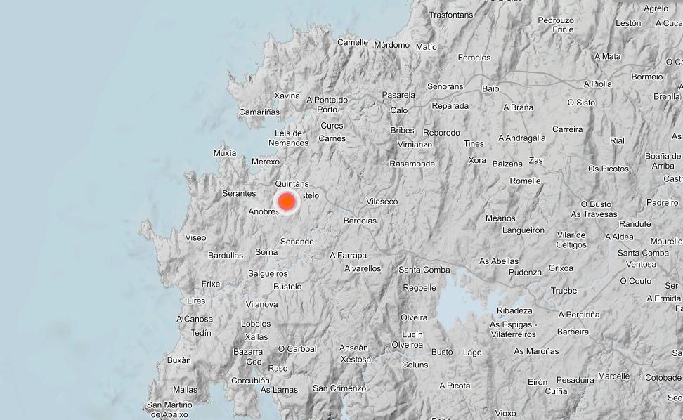 Muxía, en el corazón de la Costa da Morte, fue epicentro en la madrugada de este lunes de un temblor de tierra de magnitud 3,1 grados en la escala de Richter que se dejó sentir en los municipios colindantes. En concreto, según los datos del Instituto Geográfico Nacional (IGN), el temblor tuvo lugar a las 6:38 horas de la mañana en una área rodeada por las aldeas de Quintáns, Cebráns, Fumiñeo y Castelo, a solo un kilómetro de profundidad, en un monte próximo a la parroquia de San Martiño de Ozón. Los registros del IGN apuntan a que el temblor se sintió, además de en Muxía, en zonas de Vimianzo (Baíñas, A Gándara, Caxadas o Vilaseco, entre otras y, con menor intensidad, en Cee y Dumbría.