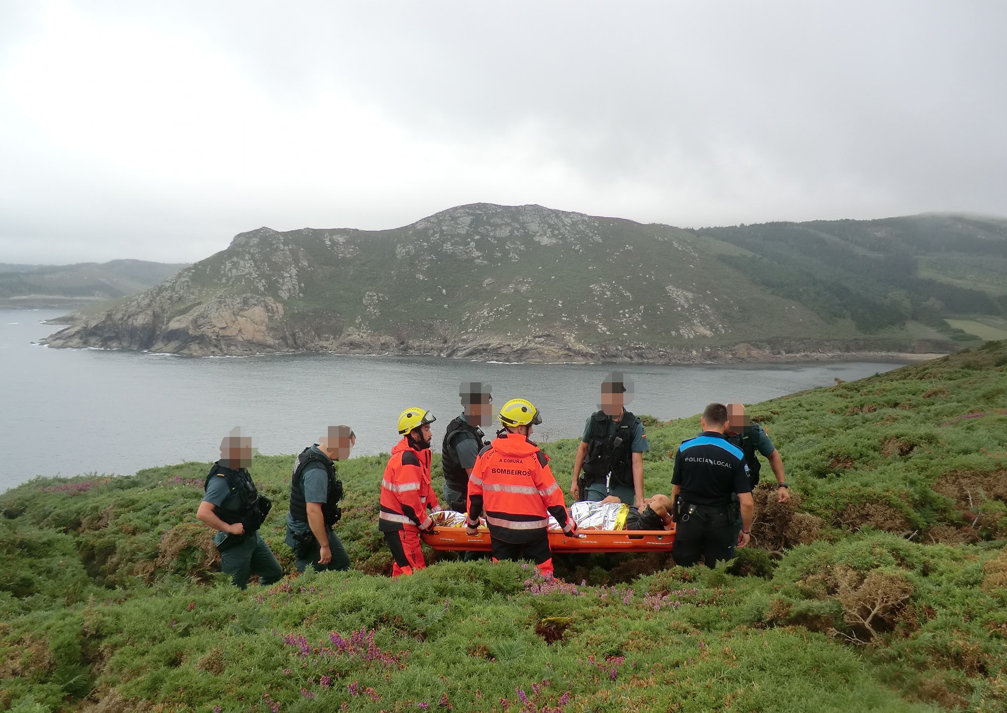 El rescate fue efectuado por voluntarios de Protección Civil de Muxía, los Bomberos de Cee, agentes de la Policía Local, la Guardia Civil y sanitarios del 061.