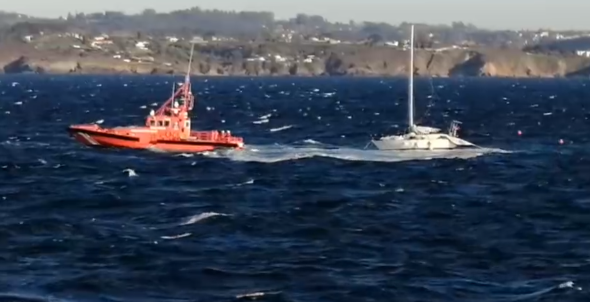 O suceso tivo lugar este domingo na zona das Durmideiras. Un veleiro de bandeira estranxeira quedou sen máquina e tivo que ser auxiliado por unha embarcación de Salvamento Marítimo. As condicións meteorolóxicas, con fortes refachos de vento, dificultaron moito o rescate, pero finalmente puido completarse.