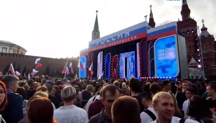 Banderas rusas y ambiente festivo en la Plaza Roja de Moscú para conmemorar el primer aniversario de la declaración de anexión de cuatro regiones ucranianas.