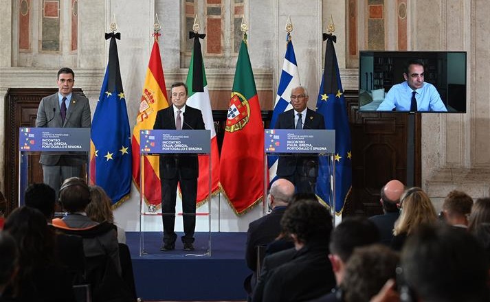 El presidente del Gobierno, Pedro Sánchez, ha viajado a Roma para reunirse con el primer ministro de Italia, Mario Draghi; el de Portugal, António Costa, y el de Grecia, Kyriakos Mitsotakis, para encontrar soluciones al elevado precio de la electricidad, antes del Consejo Europeo de los días 24 y 25 de marzo. Este viaje forma parte de su gira sobre energía, un debate que lidera el presidente español desde septiembre de 2021. El Gobierno de España defiende en la Unión Europea, desde septiembre de 2021, la necesidad de intervenir el mercado para actuar sobre el origen del problema de los elevados precios del actual mercado de la energía, separando el precio del gas del de la electricidad; además de realizar compras conjuntas, diversificar el suministro y apostar por las energías renovables.