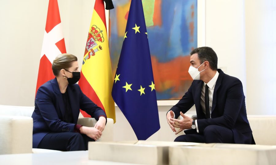 O presidente do Goberno, Pedro Sánchez, mantivo na Moncloa unha reunión bilateral coa primeira ministra do Reino de Dinamarca, Mette Frederiksen, para abordar as relacións bilaterais, o Cume da OTAN en Madrid e temas da axenda europea como a taxonomía enerxética e a aposta por unha autonomía estratéxica dos 27. Durante o seu encontro, Sánchez e Frederiksen trataron un dos asuntos prioritarios actuais: a situación na fronteira de Ucraína. Así mesmo, ambos os gobernos comparten a aposta por unha autonomía estratéxica aberta que abarque a seguridade, a Nova Estratexia Industrial e o impulso á dixitalización. Sánchez destacou a vontade de profundar no diálogo e nas complicidades entre ambos os países. «España e Dinamarca son países amigos e próximos, teñen unha relación bilateral cuxo potencial pode ir moito máis alá» concluíu o presidente do Goberno.