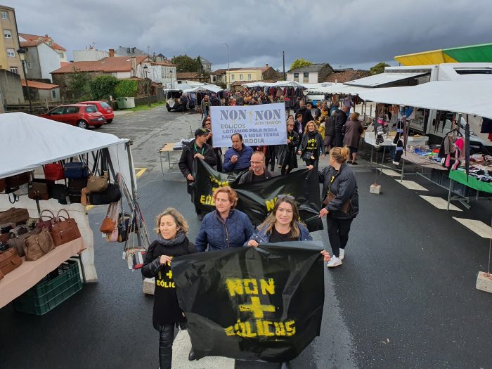 Veciñas e veciños dos concellos afectados polos parques eólicos de Bustelo, Campelo e Toural, así como polas liñas de alta tensión que darían saída a enerxía producida cara O Mesón do Vento, concentráronse este sábado no campo da feira de Santa Comba, un dos concellos afectados.