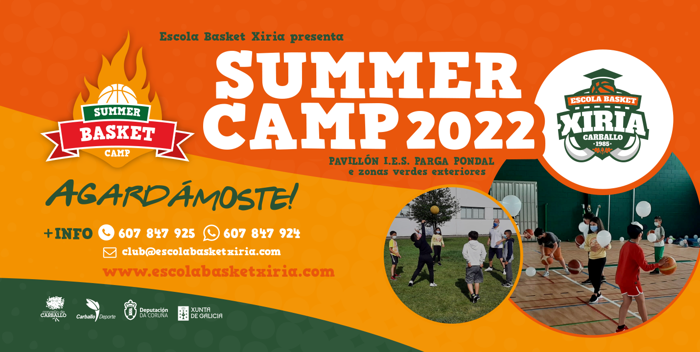 La Escuela Basket Xiria mantiene abierto, hasta el próximo 27 de junio, el plazo de inscripción en el ‘Summer Camp 2022’, una actividad que se va a celebrar entre el 30 de junio y el 31 de agosto. Pensada para niños y niñas nacidos entre los años 2007 y 2017, estará ubicada en el Pabellón IES Parga Pondal y zonas verdes exteriores. Las plazas son limitadas.