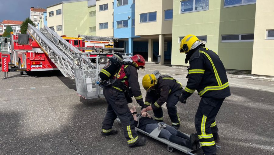 Los bomberos del parque de Carballlo acudieron este viernes, cerca de la una de la tarde, al CEIP Fogar a realizar un simulacro de incendio con evacuación en las instalaciones del colegio. A su llegada ya estaban todos los usuarios del centro en el punto de reunión a excepción de una profesora que fue evacuada por una ventana con la autoescada para simular el rescate por la fachada. Todo transcurrió según lo previsto y al final del evento los profesionales de emergencias les explicaron a los niños y niñas los aspectos fundamentales de su trabajo.