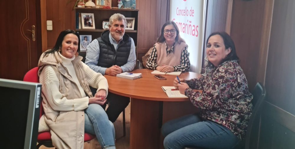 A alcaldesa, Sandra Insua, xunto coa concelleira do Encaixe, Encarna Liñeiro, a directora da Mostra, Dolores Lema, e o director de Sustentabilidade de Stolt Sea Farm, Carlos Tavares, definiron as liñas do acordo de colaboración entre ambas entidades.