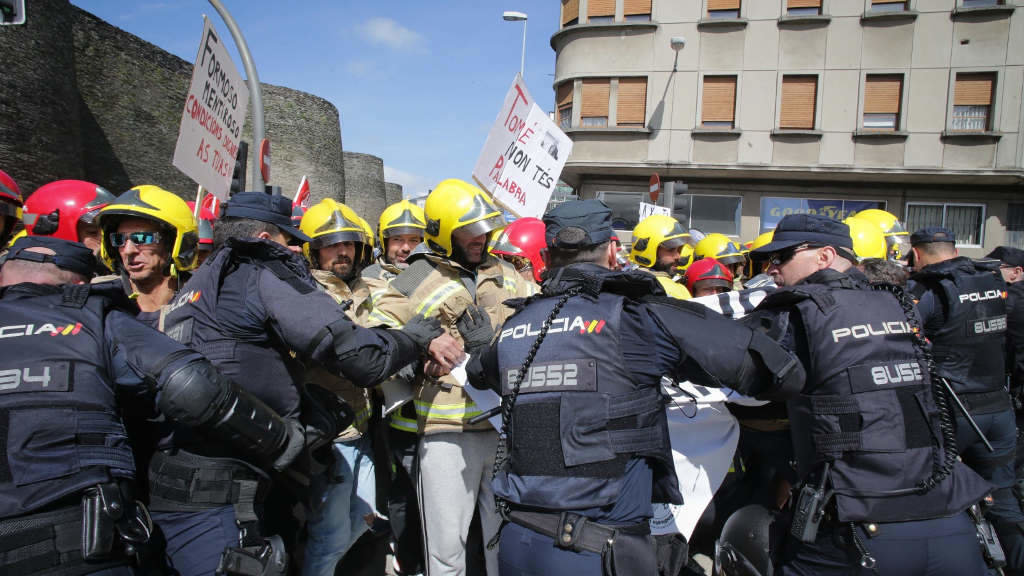 Antidisturbios da Policía realizaron cargas en Lugo durante a protesta de bombeiros de consorcios provinciais ao tentar colocar unha pancarta diante da sede da Xunta este martes. A protesta iniciábase sobre as 11 horas coa presenza de 300 e 400 bombeiros. Despois de producirse a carga, representantes dos manifestantes negociaron cos axentes para que catro deles puidesen pasar e colocar a pancarta co lema ‘Condicións dignas para bombeiros xa’.