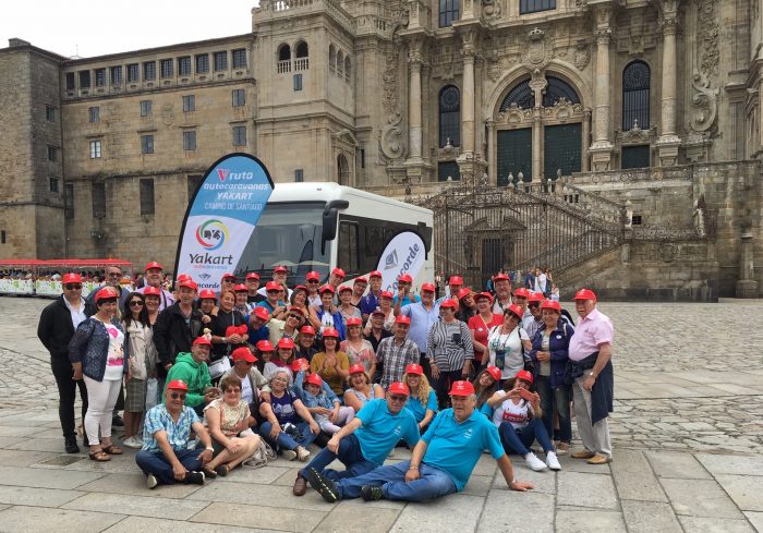 La V Ruta de Autocaravanas Yakart Camino de Santiago concluyó este domingo en Compostela después de que los 52 vehículos participantes hayan recorrido un total de 632 kilómetros. Este domingo, los turistas, cuyos vehículos estaban estacionados en el área de autocaravanas de Salgueiriños, salieron a pie hacia la Catedral, en donde posaron para la tradicional foto de grupo antes de despedirse hasta la próxima edición.