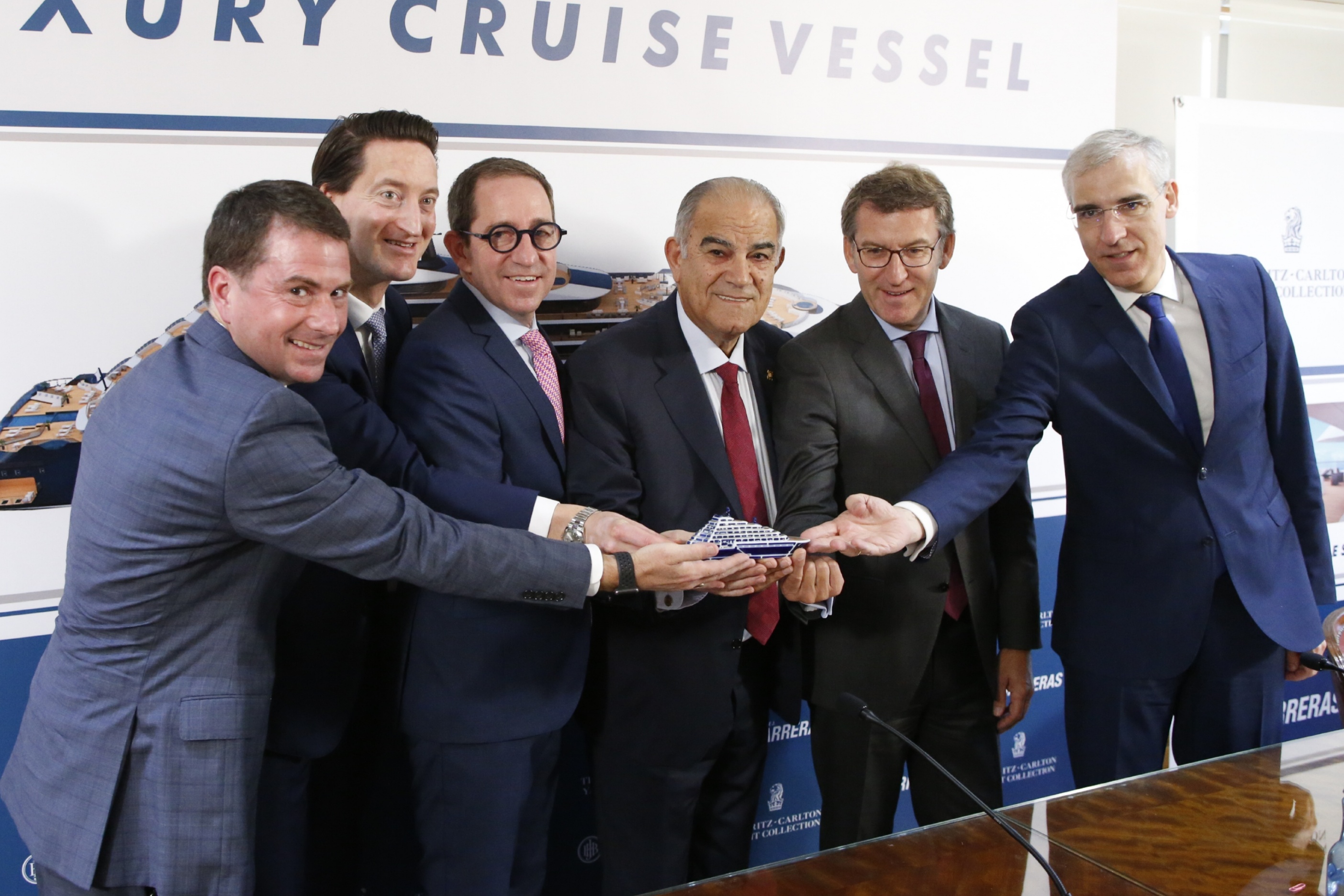 O titular do Goberno galego, Alberto Núñez Feijóo, agradeceu este xoves á compañía The Ritz-Carlton Yacht Collection a confianza depositada en Galicia despois de que se oficializara o contrato aos estaleiros de Barreras en Vigo dun novo cruceiro. Trátase dunha segunda unidade, similar á que xa se está construíndo nestes momentos, que eleva o montante total da operación aos 500 M€.