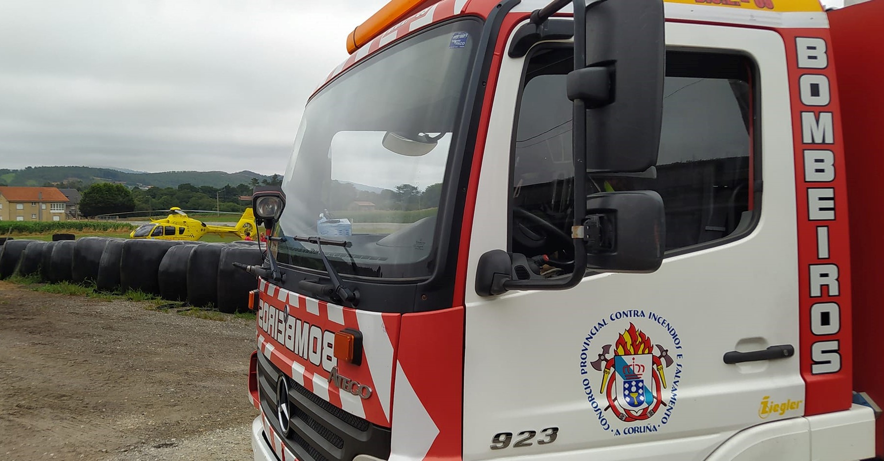 Tamén este mércores, os servizos sanitarios informaban ao 112 Galicia da mobilización do helicóptero medicalizado con base en Santiago para un domicilio particular, no lugar de Vilar, en Olveiroa, no concello de Dumbría, por mor dunha persoa que sufrira un corte cunha motoserra na súa casa.