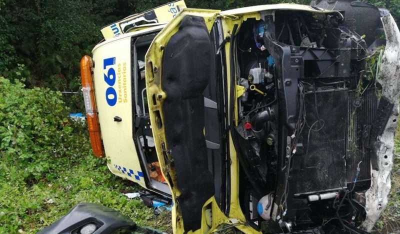 Unha ambulancia envorca mentres evacuaba a un doente en Malpica, ocorreu na AC-418 ás 9:30 horas deste mércores, cando, en pleno servizo, a ambulancia saíuse da vía e envorcou de forma que o enfermo quedou atrapado e os dous técnicos que manexaban a ambulancia resultaron feridos.