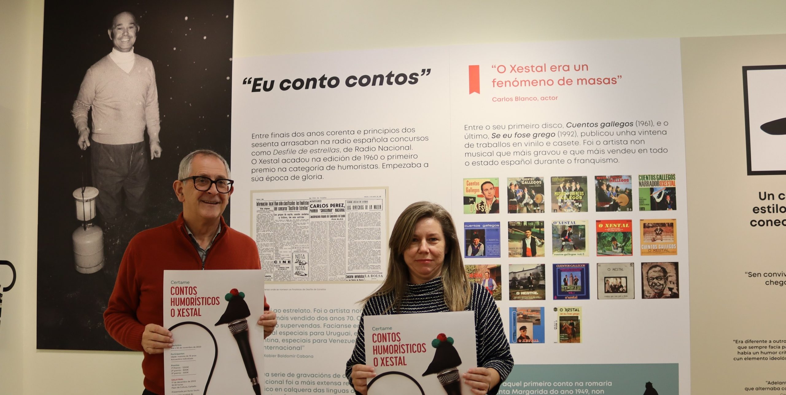 El alcalde de Carballo, Evencio Ferrero, y la concejala de Normalización Lingüística, Archivos y Bibliotecas, Ánxeles Pacoret, presentaron el Certamen de cuentos humorísticos O Xestal, que será la última actividad de este intenso año dedicado a Carlos Díaz O Xestal y con el que quieren poner en valor la faceta artística por la que fue más conocido: la de contador.