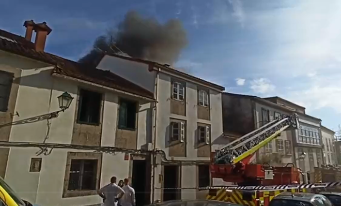 Una casa ardió en la calle del Medio, en Santiago. El incendio afectó a todo el inmueble. No hubo que lamentar ningún herido. Las llamadas de varios particulares alertaron al 112 Galicia de un edificio en llamas. En el momento del incendio, la puerta estaba abierta y había gente fuera de la vivienda, pero se alertó de que se trataba de una casa ocupada y que podrían quedar personas dentro, lo que finalmente fue descartado. Algunos de los vecinos trataron de apagar las llamas desde las casas contiguas, sin éxito. Fueron los Bomberos de Santiago los encargados de extinguir el fuego y valorar los daños que este había producido en la vivienda, de tres plantas que ardieron por completo. También se vio afectado al jardín. La gran cantidad de colchones y útiles de madera en su interior contribuyeron a la rápida propagación de las lapas. Además, ninguno otro inmueble se vio afectado. Se informó la profesionales de Urgencias Sanitarias de Galicia-061 por se fuera necesaria su intervención. También participaron en la operación agentes de la Policía Nacional y Local, así como los efectivos de Protección Civil de Santiago, que colaboraron con los Bomberos acercándoles agua para hidratarse.