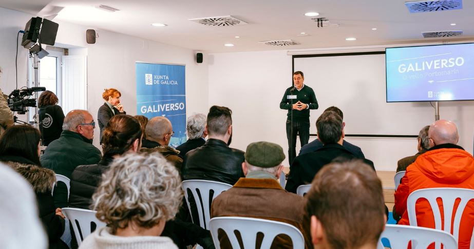 El conselleiro de Cultura, Educación, FP e Universidades, Román Rodríguez, presentó el proyecto de la nueva instalación de realidad virtual Galiverso. O vello Portomarín, que gracias a la tecnología en 3D recrea esta antigua villa luguesa, anegada por la construcción del embalse de Belesar en 1963.