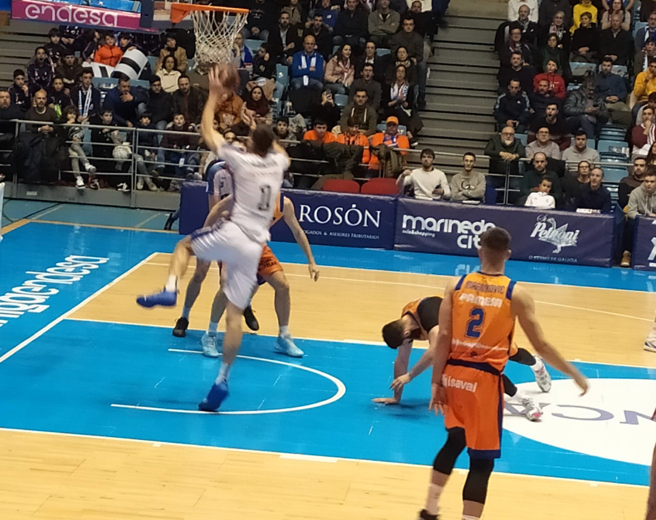 Comezaba o primeiro cuarto cun gran acerto para os locais, quen dunha plumada convertían os 3 primeiros triplos sen fallo. Abrindo a primeira brecha no marcador #ante un equipo levantino, con todo, ben dirixido de inicio por Vives, tanto en defensa como en ataque. Final do primeiro cuarto con 21-15. A continuación chegaba a quenda do de sempre, Deixan Kravic (14 puntos, 6 rebotes para asinar 18 de valoración) que con accións de gran mérito disparaba a vantaxe galega aos 10 puntos, 30-20. Contrarrestados sobresalientemente polo equipo da cidade do Turia, onde o veterano San Emeterio (20 puntos, 5 rebotes, 21 de valoración) brillaba e mantiña ao seu equipo, mesmo volteando o marcador, 2-13 de parcial, a 4 minutos do descanso e 32-33 para os de Ponsarnau. A pesar de todo, continuaba Obradoiro cunha excelente porcentaxe e acerto no tiro exterior, o que lle faltou en Andorra recuperábao en casa, chegando ao descanso cun 44-42. O Obra xogaba moi ben pero sentía a respiración de Valencia no cocote. Pouco premio para semellante esforzo e despregamento ofensivo. Tras o paso por vestiarios comezaba o terceiro cuarto con protagonismo para a parella valenciana formada por Dubljevic (12 puntos, 7 rebotes, 19 de valoración) e Labeyrie, dominando a pìntura, anotando e reboteando con solvencia (batalla do rebote claramente valenciana, 35 por 24 galegos). Mentres tanto, polo lado compostelán, aguantaban o partido os tiros de Magee e Brodziansky, deixando o partido nun pano. Nese momento, San Emeterio e un desquiciante trío arbitral fixeron que as diferenzas subisen para Valencia, 61-68, parecendo que a inesgotable loita galega empezaba a claudicar. Nada máis lonxe da realidade, Obradoiro #agarrar a calquera posibilidade como a un cravo ardendo e cunha defensa agresiva e unha serie de perdas provocadas polo tesón, marca da casa, fixo que se puxesen a tan só 2 puntos, tras triplo do mellor do partido, Czerapowicz (15 puntos, 3/4 triplos, 3 rebotes, 4 asistencias, asinando 21 de valoración), 68-70. Culminando a remontada o belga Maxime De Zeeuw con outro triplo, 75-75, entrando xa no tempo sen retorno, cando non se pode dubidar, cando non se pode errar. Novo triplo de Czerapowicz e 82-81.A continuación, un rebote ofensivo de Labeyrie con falta persoal e un dos 2 tiros anotados, empataba o partido. A falta de 8 segundos, balón para Mike Daum quen o pedía con insistencia, sen engurrarse nin esconderse e anotando un canastón na cara de Motum, 84-82. Última xogada para Valencia e Obradoiro fai falta a Van Rossom, quen anota o segundo, tras fallar, 84-83. Falta rápida do cadro taronja que só cometera 3 e non estaba en bonus, o cal favoreceu aos santiagueses quen sacaba outra vez de banda, o tempo corría e, outra vez Czerapowizc, foi capaz de escapar da presión, correndo os xusto para que lle fixesen unha antideportiva. Anotando os 2 puntos e bóla para Obra.