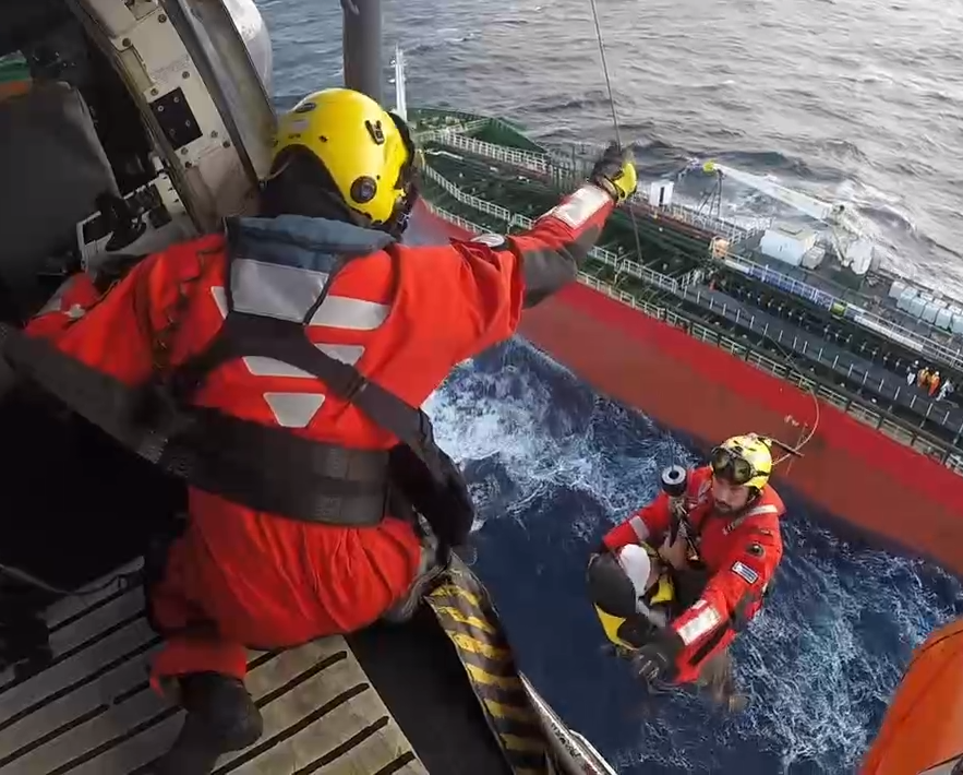 El segundo de los rescatados fue sacado del agua y llevado de urgencia al aeropuerto de Alvedro por el helicóptero Helimer 401.