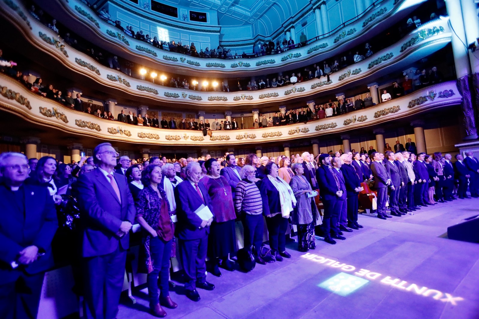 La ceremonia, presentada por el actor Manuel Manquiña ante un teatro repleto, sirvió para repartir ocho premios a las personas que contribuyen a la excelencia, la conservación y el esparcimiento de lo mejor de la música, artes escénicas, audiovisual, lengua, patrimonio cultural, letras, artes plásticas y proyección exterior de Galicia.