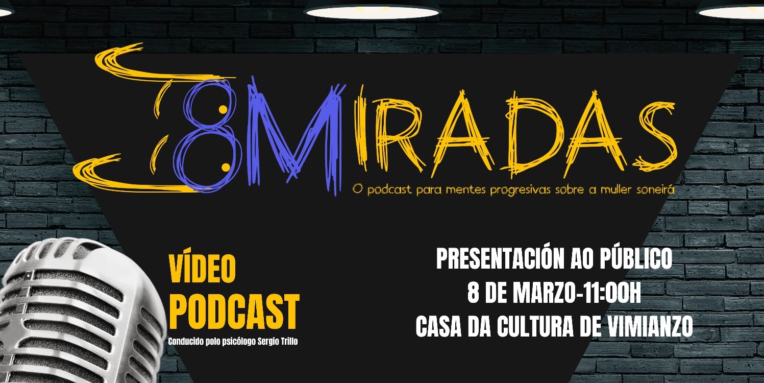 O venres, 8 de marzo, as 11:00 horas, terá lugar a presentación do podcast ‘8 miradas’. Unha iniciativa creada co obxectivo de dar a coñecer a historia de distintas mulleres do municipio a través dunha conversa gravada con Sergio Trillo. Son un total de 8 pezas en vídeo protagonizadas por mulleres diferentes, únicas, e con perfís e experiencias moi distintas e peculiares.