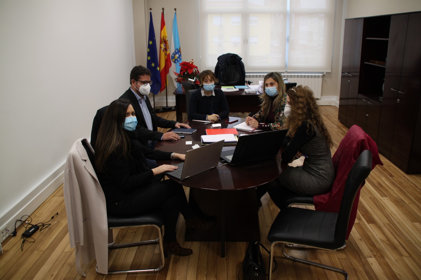 A la reunión de asistieron la alcaldesa, Mónica Rodríguez; la concejala de Benestar Social, María José Pose; la técnica municipal Lorena Cernadas y Ana Rodríguez, del departamento económico.