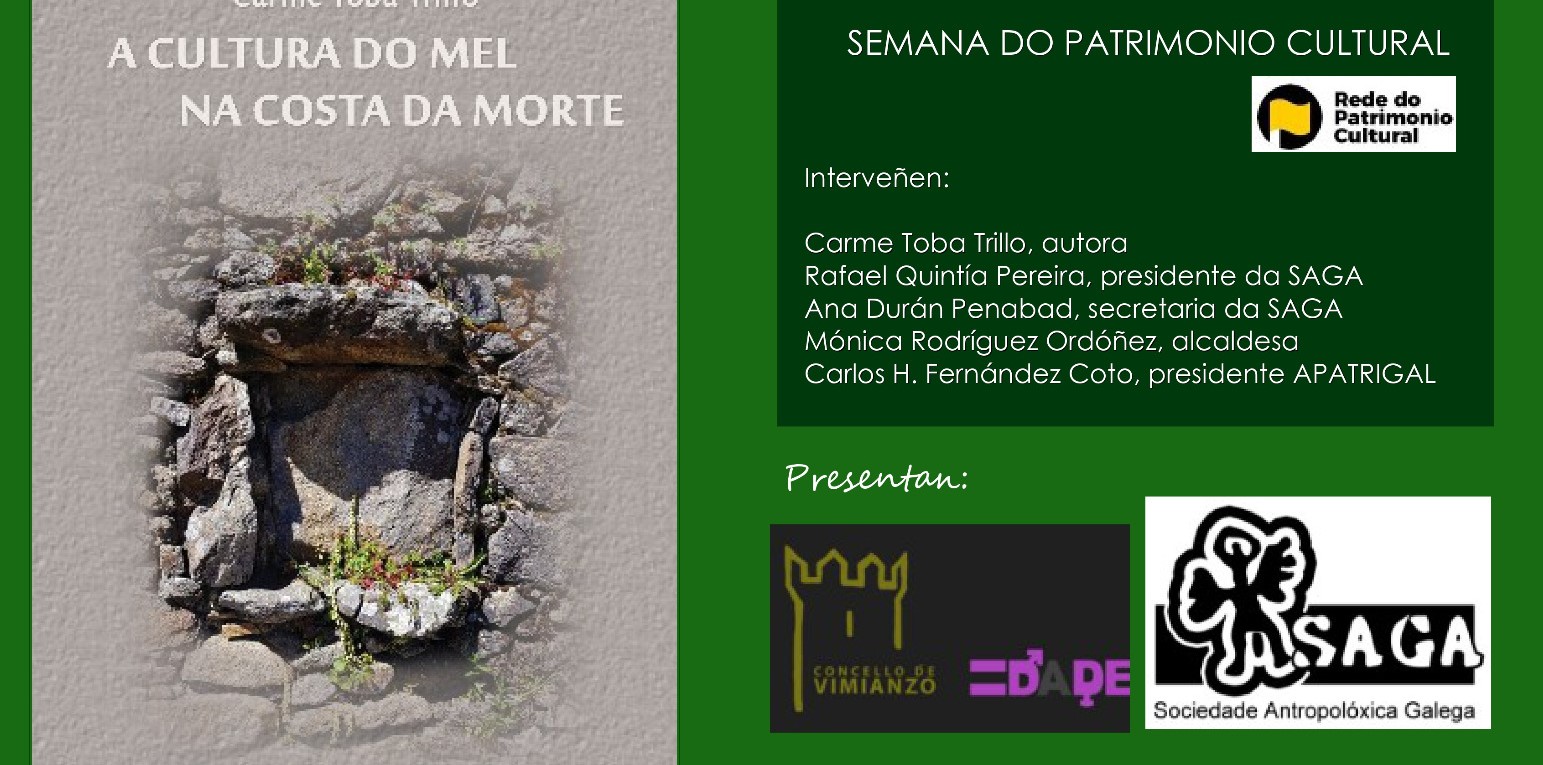 O Concello de Vimianzo celebrará a Semana do Patrimonio Cultural acollendo a presentación da obra ‘A Cultura do Mel na Costa da Morte’, de Carme Toba Trillo. O acto terá lugar ás 20:00 horas, na Casa da Cultura de Vimianzo.