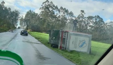En el ayuntamiento de Zas, las condiciones de la carretera también contribuyeron a provocar un nuevo accidente. Esta vez, un camión que transportaba cerdos se salió de la vía en la carretera que une las localidades de Piolla y Zas sin que ninguna persona resultada herida.