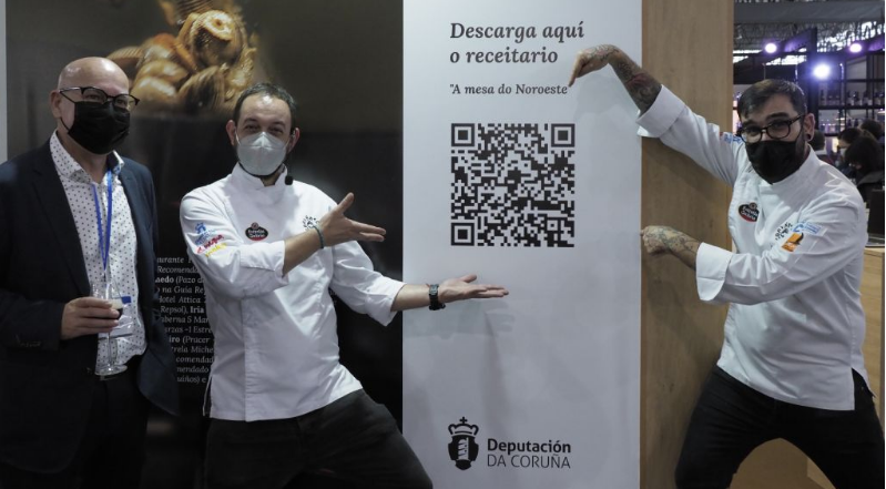 Los cocineros Javi Freixeiro y Moncho Bargo del restaurante Pracer de A Coruña y miembros de la Asociación Coruña Cociña fueron los encargados del showcooking en el stand de la Diputación, que se enmarcó en la presentación del recetario “A mesa do noroeste. Un recorrido por la provincia a través de su gastronomía” editado por la Diputación y realizado en colaboración con la Asociación Coruña Cociña, levantó una gran expectación y congregó numeroso público, prensa especializada y bloggers en el stand provincial.