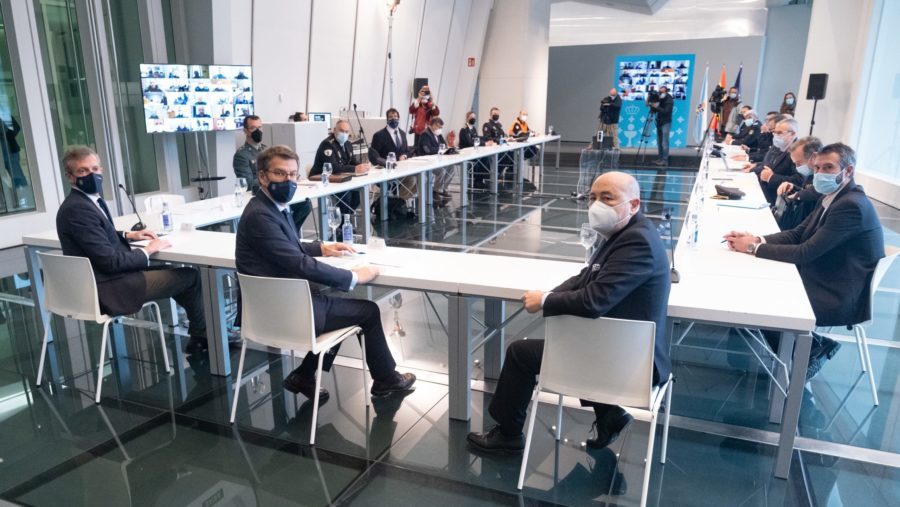 El presidente de la Xunta, Alberto Núñez Feijóo, presidió esta reunión, en la que también participaron el vicepresidente primero, Alfonso Rueda; el delegado del Gobierno en Galicia, Javier Losada; y el presidente de la Fegamp, Alberto Varela. Además, en la reunión también estuvieron presentes el jefe superior de la Policía Nacional en Galicia, el general jefe de la Guardia Civil, el comisario de la Policía Autonómica, los máximos responsables de las policías locales de las grandes ciudades; así como representantes de las agrupaciones de voluntarios de Protección Civil. Por videoconferencia participaron la mayoría de los jefes de los cuerpos de policías locales de Galicia, así como miembros del comité clínico para explicar la situación sanitaria.