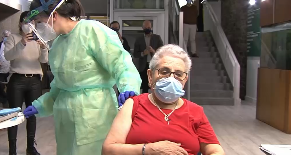 Las primeras 500 dosis de la vacuna de Pfizer llegaban este domingo a la residencia de mayores Puerta del Camino en Santiago de Compostela. A las diez de la mañana entraban en el almacén de una empresa que dispone del sistema de congelación necesario para su conservación en frío. Acto seguido la santiaguesa Nieves Cabo, de 82 años, fue la primera gallega en recibir la vacuna contra la covid-19. El segundo vacunado fue José Antonio Arcay, del servicio de cocina de esta residencia. Quedan vacunadas 250 personas, dado que hace falta administrar dos dosis de la vacuna a cada uno de los pacientes prioritarios. Este lunes se recibirán otras 18.000 dosis para completar la primera entrega semanal del Gobierno central. El martes será cuando se realice la vacunación de manera simultánea en residencias de las siete áreas sanitarias gallegas.