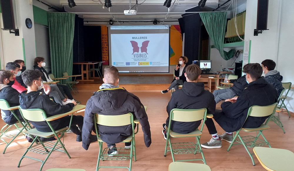 Esta semana case todo o alumnado do centro participou no obradoiro Mulleres visibles. Violencias machistas impartido por Olalla Trigo da Asociación Visibles. Este taller traballa «na prevención, identificación e sensibilización das diferentes formas de violencia de xénero», sinalan desde o centro escolar. Se ben a violencia física, psicolóxica e vicaria son as más coñecidas, existen máis modalidades como a obstétrica, a cultural ou a estrutural.