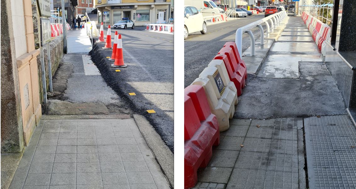 Desde el lado de A Piroga, perteneciente al ayuntamiento de Vimianzo, preocupa el final del puente sobre todo en el tema de la acera que finaliza en la propia infraestructura y que quedó «desfeita por todo o parcheado que quedou antes da ponte».